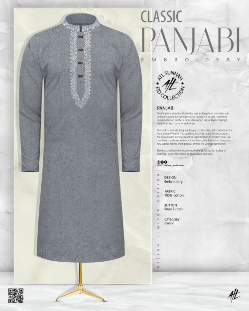 স্টাইল আর ঐতিহ্যের নিখুঁত সংমিশ্রণ নিয়ে এসেছে আমাদের ক্লাসিক কোয়ালিটির Men Embroidery Panjabi। ১০০% খাঁটি কটন ফেব্রিক দিয়ে তৈরি এই পাঞ্জাবি আপনার আরামের নিশ্চয়তা দেবে সারাদিন।