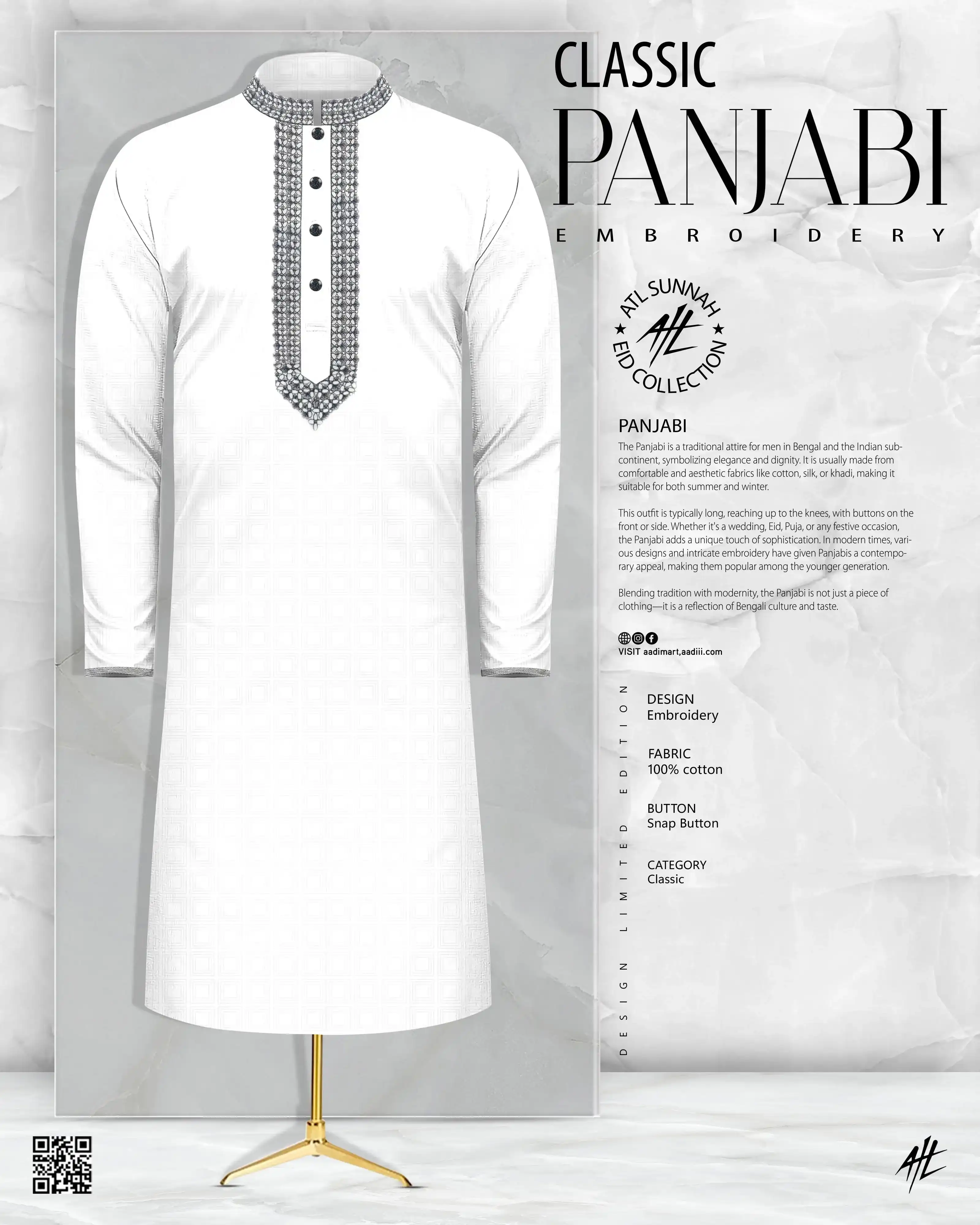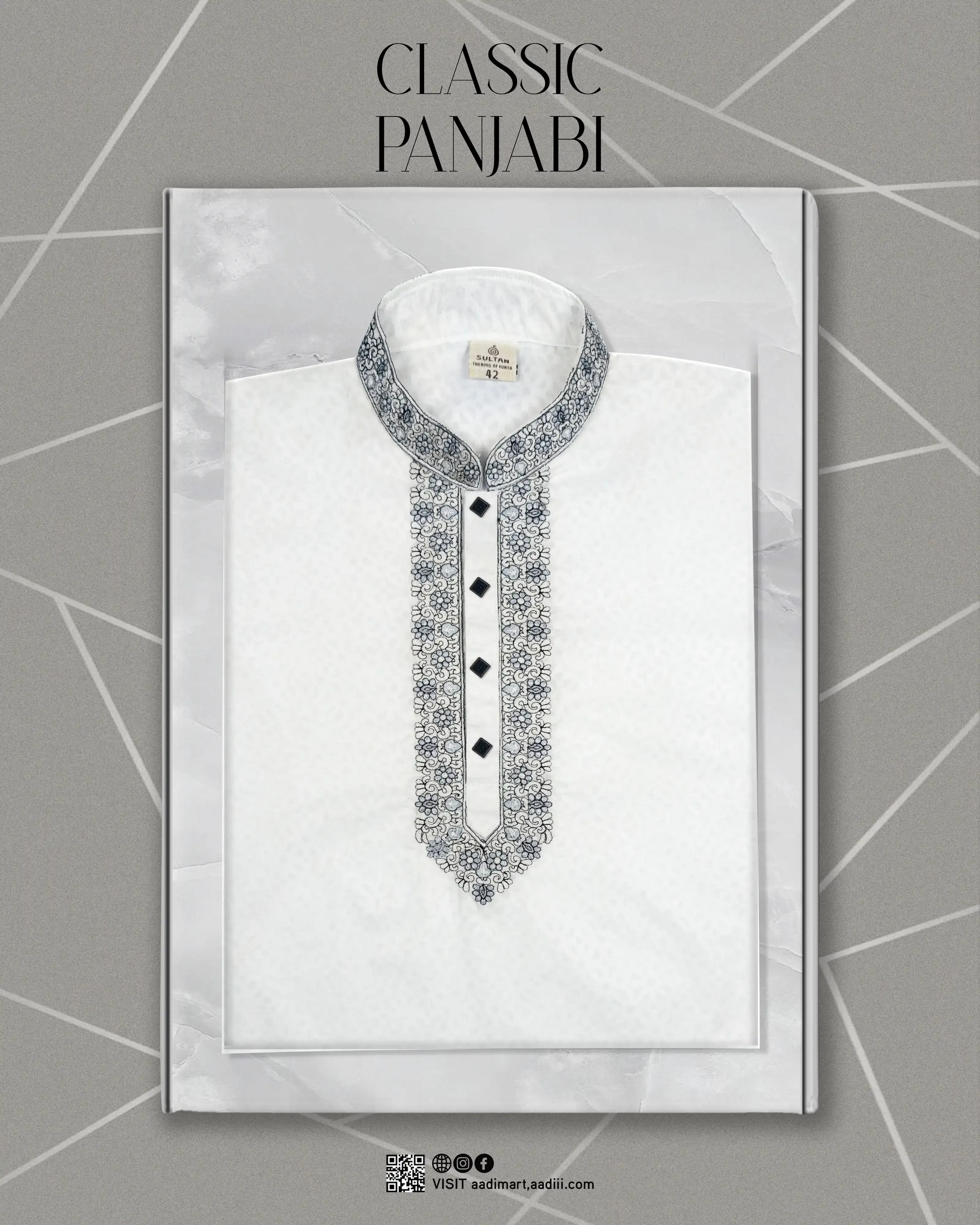 স্টাইল আর ঐতিহ্যের নিখুঁত সংমিশ্রণ নিয়ে এসেছে আমাদের ক্লাসিক কোয়ালিটির Men Embroidery Panjabi। ১০০% খাঁটি কটন ফেব্রিক দিয়ে তৈরি এই পাঞ্জাবি আপনার আরামের নিশ্চয়তা দেবে সারাদিন।